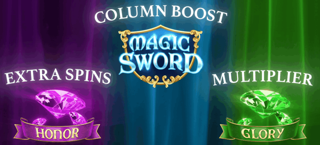La Magic Sword duplica símbolos Link en la columna central, mientras Honor multiplica tus premios y Glory te concede nuevas oportunidades para seguir en batalla.
